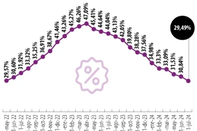 La tasa de usura regresó a los niveles de mayo de 2022 y se establecerá en 29,49% para julio.